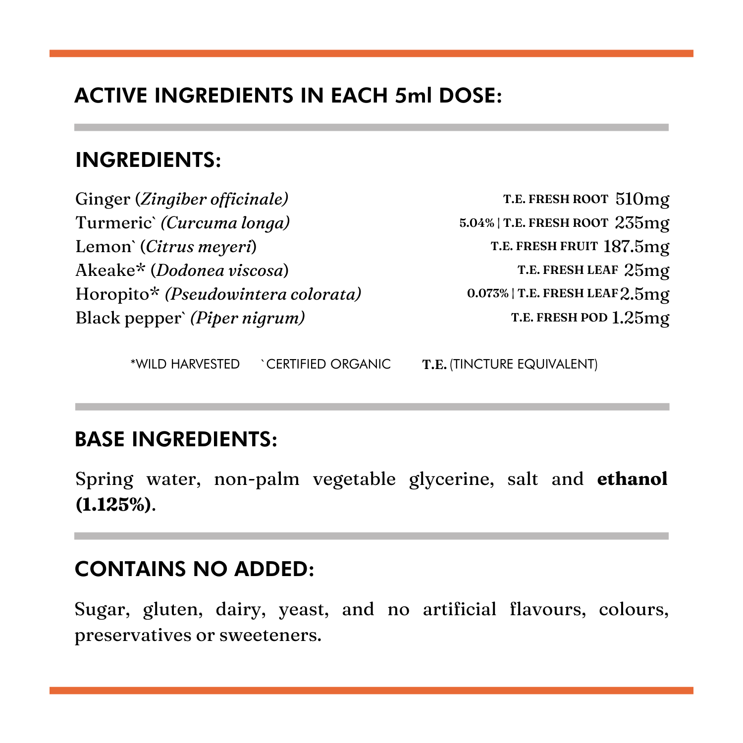 °Certified Organic, ^ Wild Harvested, T.E (Tincture Equivalent)